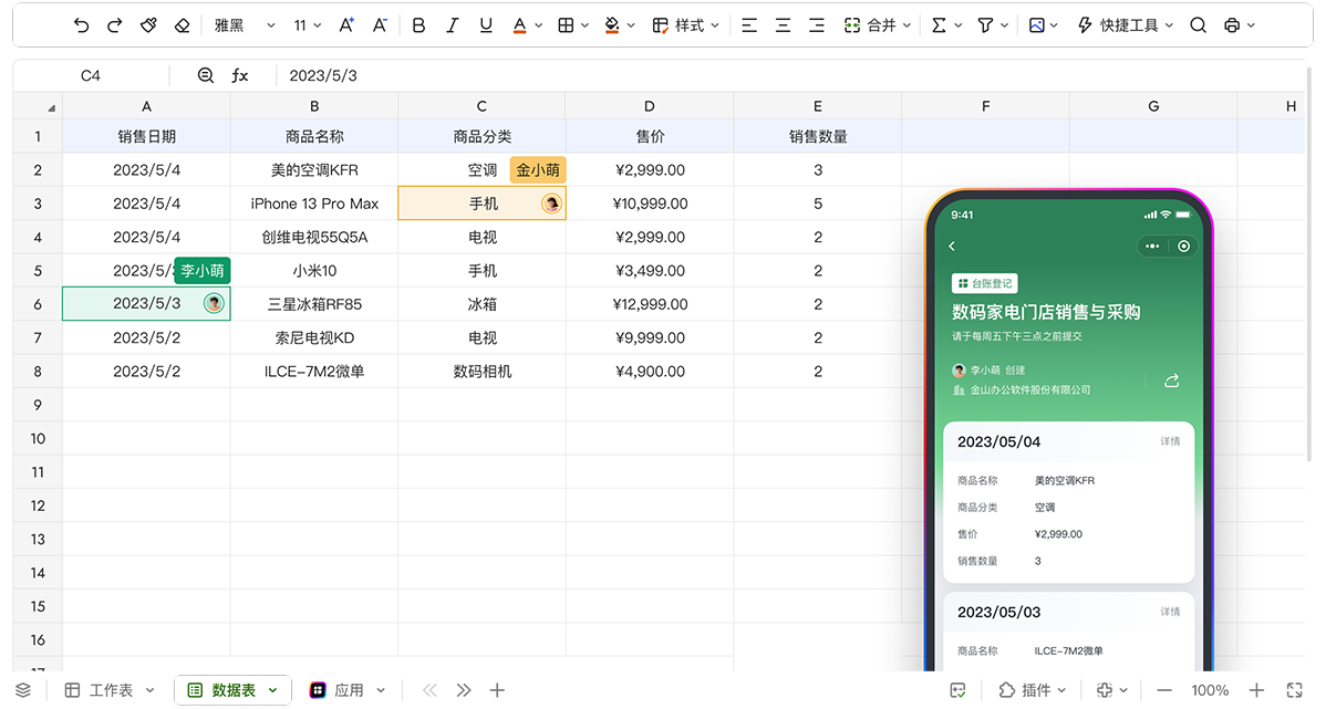 支持团队成员实时在线协作编辑